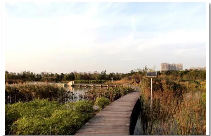 水流在经过这7级净化后,过桥注入暨阳湖,与暨阳湖湖水循环,形成天然的活水体系。湿地景观带连同镜湖公园是暨阳湖生态教育中心区域。